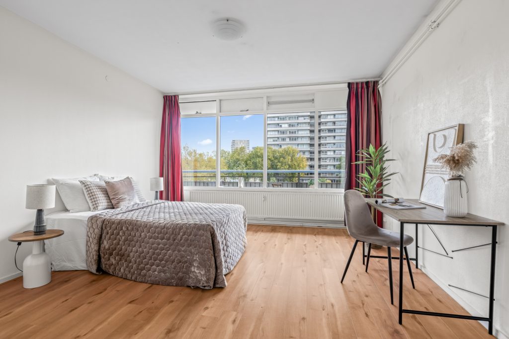 De master bedroom is royaal van formaat; hier is genoeg ruimte voor een kingsize bed, kastruimte en eventueel een thuiswerkplek. Ook de tweede slaapkamer is ruim en biedt voldoende plek voor een groot bed, werkplek of kinderkamer, wat jij maar wilt. Deze kamer beschikt bovendien over een vaste (kleding)kast.
